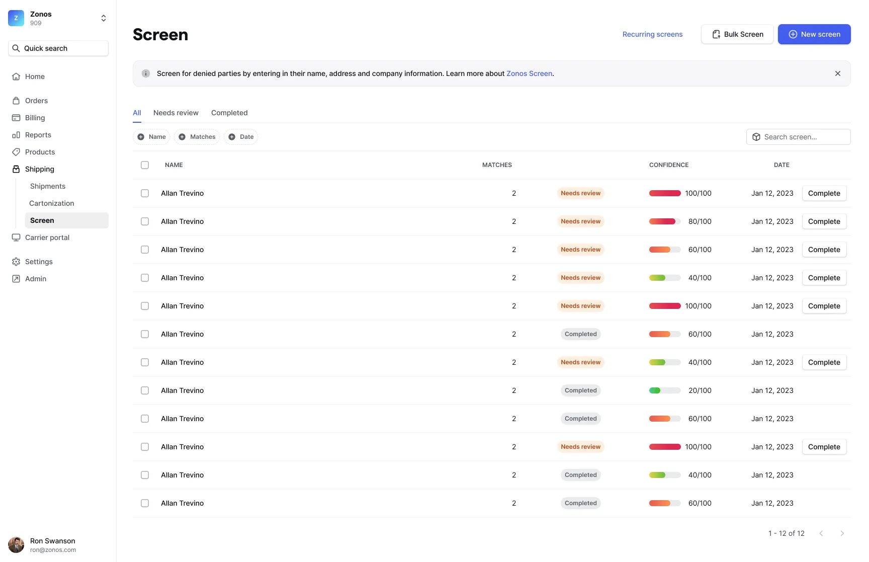 Learn how to screen multiple parties using bulk Screen. The following instructions will allow you to easily upload a list of parties in Dashboard and determine if there are any potential matches in our denied party database.